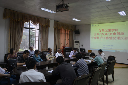 谢书记首先组织全院教职工学习了《湖南省高等学校“四风”突出问题专项整治工作实施方案》以及《南华大学深入开展“四风”突出问题专项整治工作方案》。随后谢书记根据学院情况进行了学院整治“四风”突出问题的十条方案解读,并做主题发言。强调做好整改工作要通过制度的建立来形成长效机制,巩固活动成果,积极创造各方面条件来配合整改、支撑整改。此次专项治理工作旨在整治我院“四风”方面存在的突出问题,严肃工作纪律,规范办事行为,提升学院教学与管理水平。