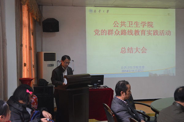 会上,党委书记谢四平首先代表学院党政领导班子作了best365英国在线体育党的群众路线教育实践活动总结报告。报告共分为三个部分,分别是:主要工作及做法、主要成效及体会、存在问题及下步打算。谢书记说,按照中央“照镜子、正衣冠、洗洗澡、治治病”的群众路线教育实践活动的总体要求,根据学校党委的总体部署,公卫学院结合工作实际,开拓创新,真抓实干,扎实开展群众路线教育实践各环节活动,确保教育实践活动取得了良好的效果,学院组织开展了一系列形式多样和富有成效的活动。通过开展通过教育实践活动,有效改善了学院工作作风,各项制度进一步完善,为best365英国在线体育各项工作迈上新台阶奠定了良好的基础。