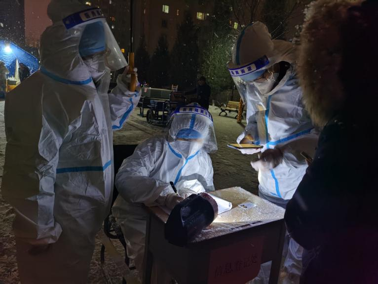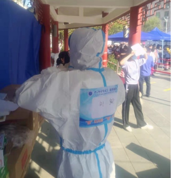 2022年2月,由于疫情影响,田蒙珂同学不能按时返回实习点参与实习,而是留在家中待命。在家乡的疫情来势汹汹之际,她选择积极主动地向社区报备,参与了内蒙古自治区呼和浩特市赛罕区的疫情防控志愿工作,辅助派遣来的医护人员和社区工作人员完成全民核酸检测。2月15日下午,接到迅速开展全民核酸的通知后,田蒙珂和工作人员一起完成了临时核酸点的搭建。而穿好防护服,正式开始核酸检测已经是当天入夜,天气寒冷,大雪纷飞,但是她迅速接受好培训,并充满干劲地开展了当地居民的信息录入和纸质登记工作。北方的雪花大而沉重,所有工作人员的面屏上都结了厚厚的一层霜,手中登记册也渐渐地被洇湿,尽管如此,田蒙珂依然用饱满的热情对待工作,确保每一瓶检测管的信息准确无误。她所在社区近三千人次的第一轮核酸检测工作井然有序的进行了到了深夜三点,虽然有个别不理解的居民和工作人员有小小的争执,但是大部分居民都十分配合,看着居民们为防控工作人员送来的暖宝宝、手套和热奶茶,听着大家关切的话语,作为一名党员,田蒙珂真真切切地体会到了能够为人民服务的感动与自豪。
