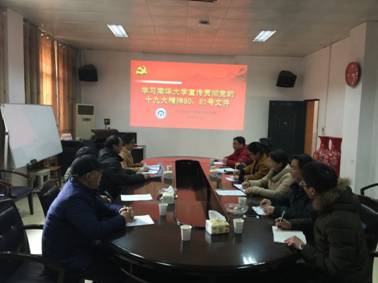 杨胜园书记带领支部成员认真学习了南华大学宣传贯彻党的十九大精神南华校发80.81号文件。大家认真记录了文件的要点,并开展了热烈的讨论。随后梁好老师主持了十九大报告知识问答赛,问答赛包括必答和抢答两个环节。全体党员积极参与,气氛活跃!