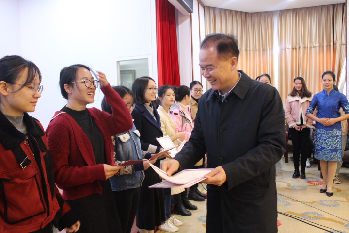 最后,何旭娟副校长感情饱满的给大家诵读了《湘女赋》,她借“习百医之佳案兮,明千卷之良方”告诫同学们应该充分传承和弘扬湘女聪慧奋勇、朴素善良的精神,刻苦学习专业知识,不断完善自己,努力我国医疗事业发展做出力所能及的贡献。