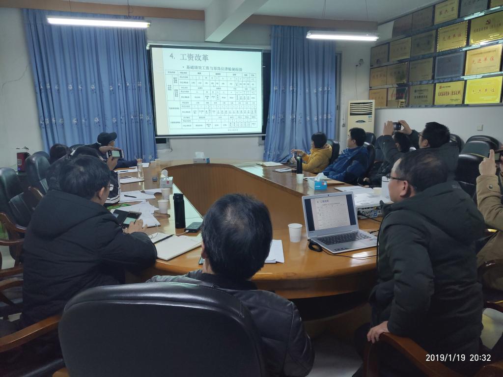 1月19日晚上8点,人力资源部唐伟老师在学院行政会议室就2018年度绩效工资改革要点进行了解读,院领导及各系室负责人参加了此次会议学习。