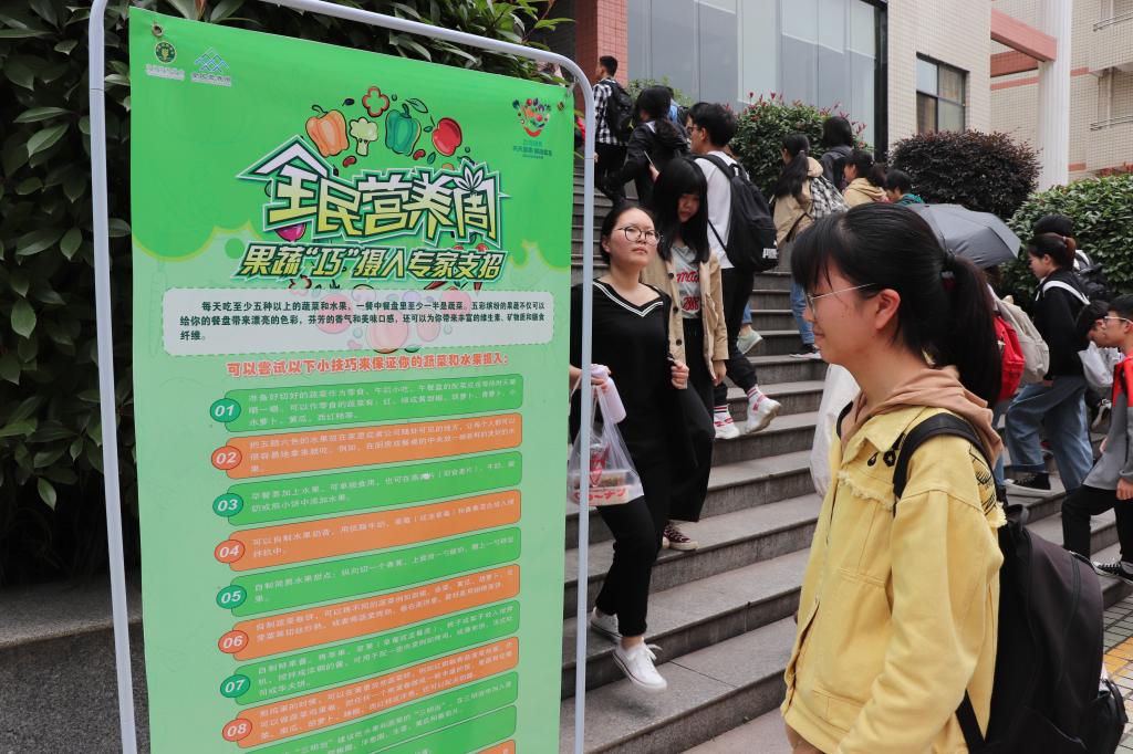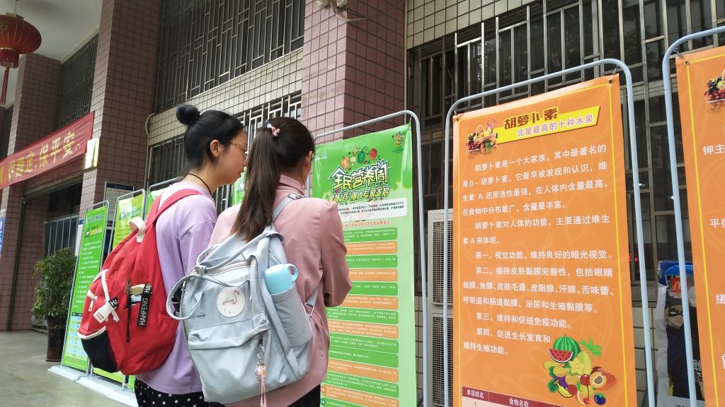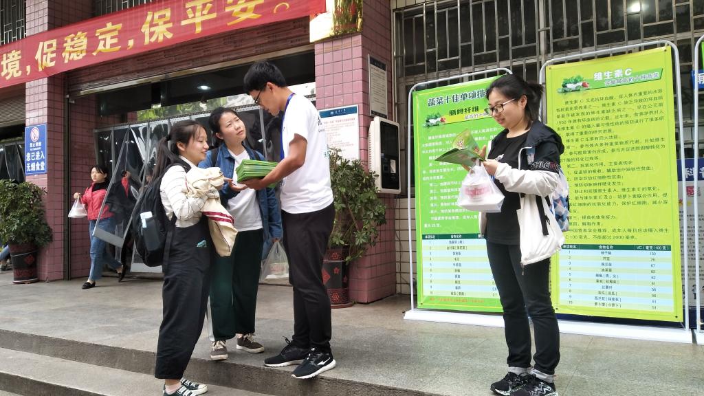 每年五月的第三周为“全民营养周”,全民营养周的主题为“合理膳食、天天蔬果、健康你我”。活动伊始,由营养科普宣传员在南华大学红湘校区教室通过播放宣传视频的方式宣传营养健康知识,号召大家积极参与此次活动。中午,宣传员们分别在南华大学红湘校区求是园、博学园和致远园三个食堂给路过的老师以及同学们派发营养科普知识宣传手册,并向老师和学生介绍合理膳食的重要性。宣传员们依次从“新鲜蔬菜样样好”、“餐餐有蔬菜,深色要过半”、“水果天天有”、“蔬果巧搭配”和“对特殊人群的建议”这五个方面对如何合理安排饮食进行了详细的说明。