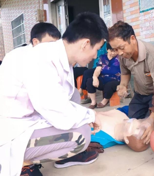 上午8时30分,项目组成员开始了现场演练,他们利用心肺复苏训练模拟人等医疗器械,向当地村民讲解了在紧急情况下如何采取心脏按压、人工呼吸等最基本的急救知识和正确急救方法,理论培训完成后队员们亲自为当地村民做了示范并邀请几位村民现场做模拟救助。