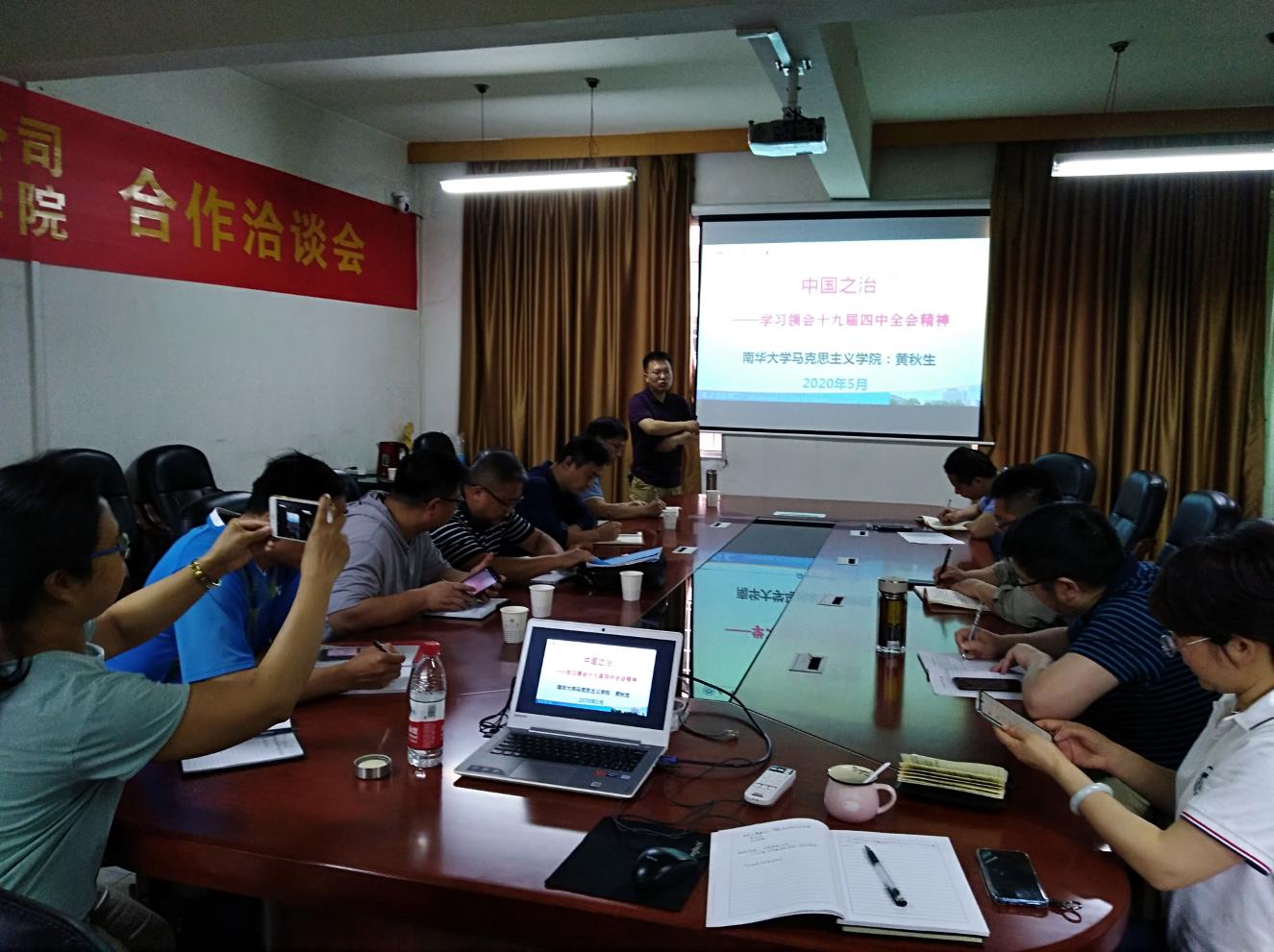 5月22日上午10:30,best365英国在线体育在院三楼会议室召开院党委理论学习中心组第二次集中(扩大)学习,院党委书记张天成、院长龙鼎新及院党委理论学习中心组全体成员、各党支部书记参加学习,学校理论学习辅导员、马克思主义学院院长黄秋生以《中国之治—学习领会十九届四中全会精神》为题作专题辅导报告,会议由院党委书记张天成主持。