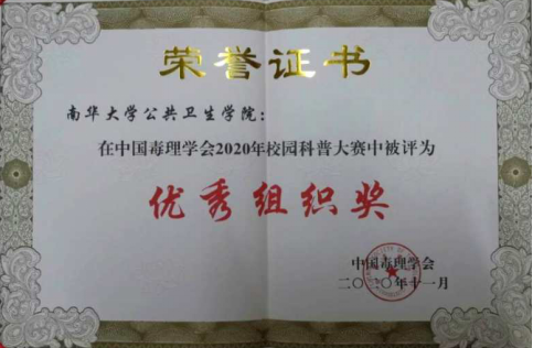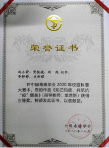 2020年2月至6月,以“健康安全与科技创新”为主题的、由中国毒理学会和科学技术普及出版社联合举办的第三届中国毒理学会校园科普作品大赛,向在校大学生征集毒理学相关科普作品的活动。我院学子在肖锡林副院长的热情号召下,积极参赛,并斩获佳绩。我院荣获中国毒理学会2020年度校园科普竞赛优秀组织奖,李慧芹等同学的《如影随形的电磁辐射》和赵小蒙等同学的《知己知彼,共筑抗"疫"堡垒》科普作品分别获得二等奖和三等奖。