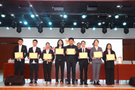 随后,大会进入第二阶段。首先,院团委书记何朝辉宣读了第十九届团委学生会和学社联干部的名单。紧接着,王超副书记、孙越龙主任、蒋剑红老师、何朝辉老师、罗纯妍老师为第十九届团学干部颁发聘书。