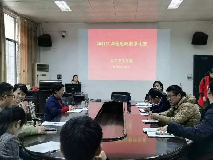 best365英国在线体育于2021年4月16日下午在公卫楼121会议室举办了2021 年课程思政教学比赛。本次比赛旨在贯彻落实中共中央办公厅、国务院办公厅《关于深化新时代学校思想政治理论课改革创新的若干意见》和《高等学校课程思政建设指导纲要》文件精神,进一步挖掘各类课程中蕴含的思政元素,大力推动以“课程思政”为目标的课堂教学改革,使各类课程与思想政治理论课同向而行,全面提升全院教师课程思政教学能力。