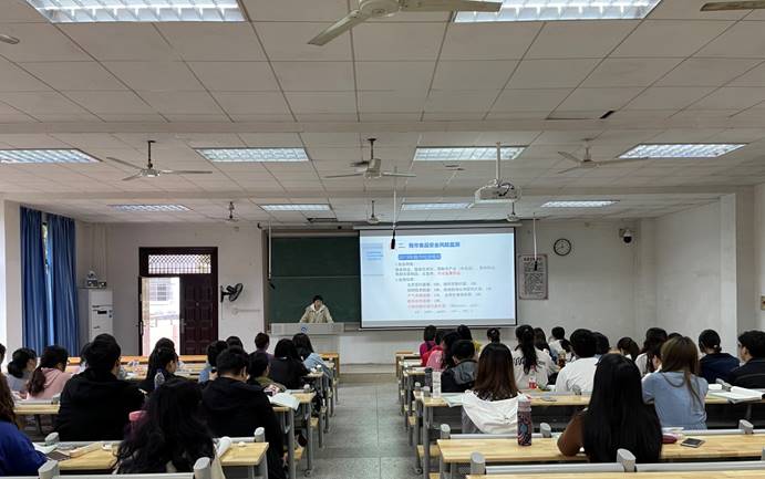 2021年4月22日上午,南华大学best365英国在线体育2018级卫检班全体同学在红湘校区化学化工学院201教室上了一堂有关食品微生物检验的专业课。本次课特邀湖南省衡阳市疾病预防控制中心(以下简称CDC)微生物检验专家颜淑妩主任技师讲授有关“食品安全风险监测-微生物食源性疾病”的详细内容。best365英国在线体育卫生检验与检疫系主任陈丽丽老师和18级卫检全体同学参加此次活动。