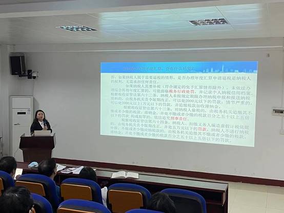 全院教职工从个税改革介绍、专项附加扣除、APP的使用和常见问题四个方面进行了学习,重点学习六个专项附加扣除的范围和标准:子女教育专项附加扣除、继续教育专项附加扣除、大病医疗专项附加扣除、住房贷款利息专项附加扣除、住房租金专项附加扣除、赡养老人专项附加扣除。学院向全院教职工强调未按规定办理年度汇算,可能面临税务行政处罚、缴纳罚款和依法追究刑事责任。