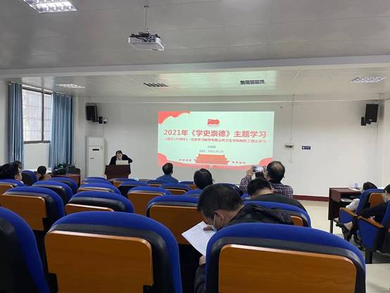 最后,张天成做总结发言。张天成强调全体教职工应深刻认识学习党史的重要性,开展党史学习教育,“学史崇德”是必不可少的。同时,他强调道不可坐论,德不能空谈,广大教师要坚定理想信念、厚植爱国情怀、涵养高尚师德,以为党育人、为国育才优异成绩庆祝中国共产党百年华诞。结合最近新冠疫情新考验和新高考下的招生新挑战,要求全体教职工做好个人防护,严格遵守学校防疫要求,各系室认真做好2021年秋季招生准备,为共同推动公卫学院高质量的发展出一份力量。
