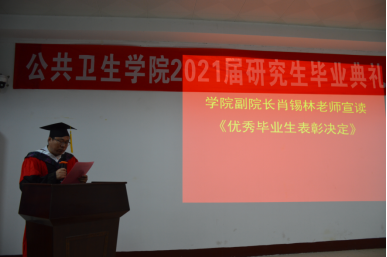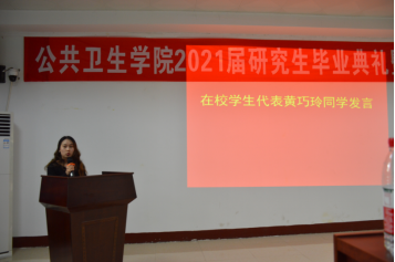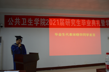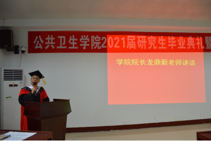 “亲爱的同学们,今天是你们人生中的重要时刻,希望大家能记住研究生这段美好的回忆,牢记师长、父母的殷切期望,秉承母校明德博学、求是致远的校训,在新的学习与工作岗位上艰苦奋斗,开拓进取,创造属于你们自己的价值。当前我国公共卫生体系、疾病预防控制体系正面临深刻变革,希望你们积极投身到祖国公共卫生事业和健康中国的建设中去,回报母校和国家的培养。”龙鼎新发表了饱含深情的致辞,表达了对毕业生的祝贺不舍与期盼。