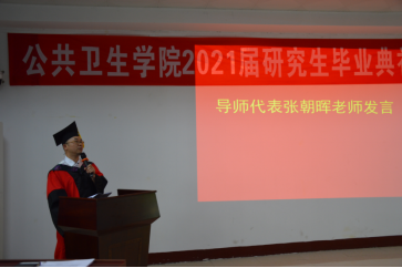 张朝晖作为导师代表进行讲话,一字一句,满是真情实感。张朝晖回忆了三年里同学们在研究生学习期间的点点滴滴,表达了对同学们即将离开的不舍与祝福。