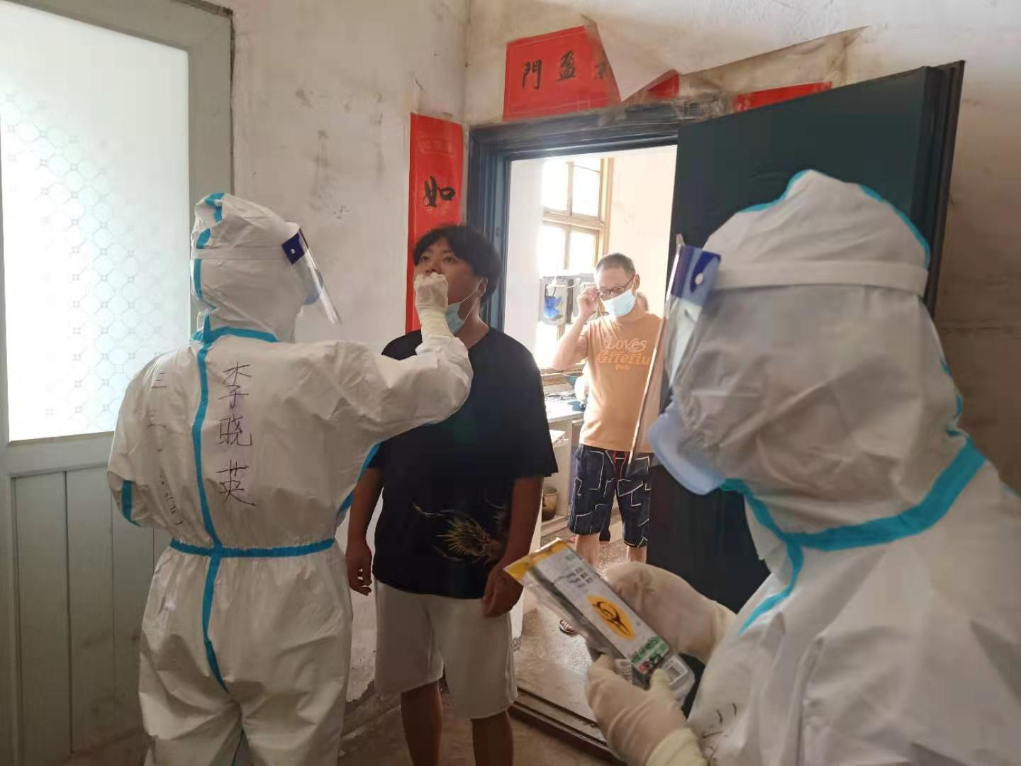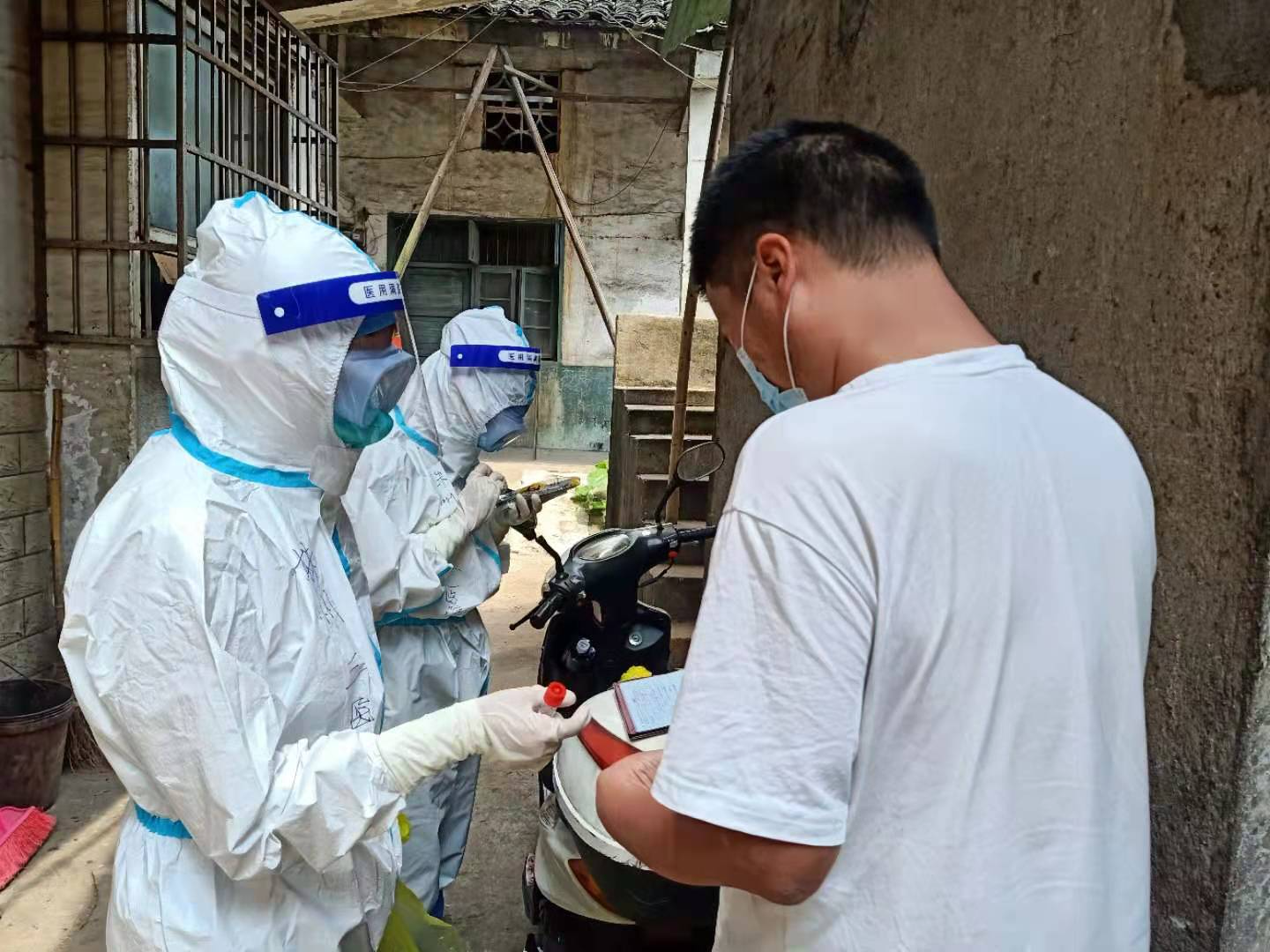 8月的株洲,骄阳似火。志愿者们不惧“烤”验,始终坚守在抗疫第一线。一个班次下来,他们的身上的衣服湿了又干,干了又湿。摘下口罩时,他们露出那闷的发白的脸颊和深深的勒痕让人肃然起敬,心痛不已。前往次密接触者家中进行检测,虽然危险,但他们毫不退缩,而是勇往直前。社区居民张大爷见他们不辞劳苦,感慨道:“大热天全副武装,连口水都不能喝,上个厕所还得憋着,实在太辛苦了!”