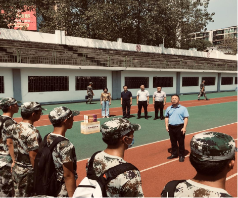 2021年9月18日,在best365英国在线体育院长龙鼎新的带领下,我院领导一行到田径场看望慰问我院2021级军训新生,为新生们带去月饼和真挚的节日祝福。