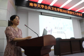 接着,陈丽丽强调:“卫生检验与检疫是健康卫士的眼睛,是破解众多纷繁复杂的公共卫生事件元凶的侦探。”从卫检的创立到卫检与生活相关的各方面,介绍了南华卫检专业在全国高校的地位以及在重大公共卫生事件中对传染病防控的重要性。并以优秀毕业学长学姐在2020年抗击新型冠状病毒的突出表现激励新生好好学习,夯实基础。陈丽丽老师对新生提出以下期望“着力培养学习能力”“交叉学科的学习将会使你变得更有创新力”“一专多能将会使你如鱼得水”“要培养主动与不同学科的老师同学合作、交流、实线的能力”“韧劲和毅力会让你脱引而出”。