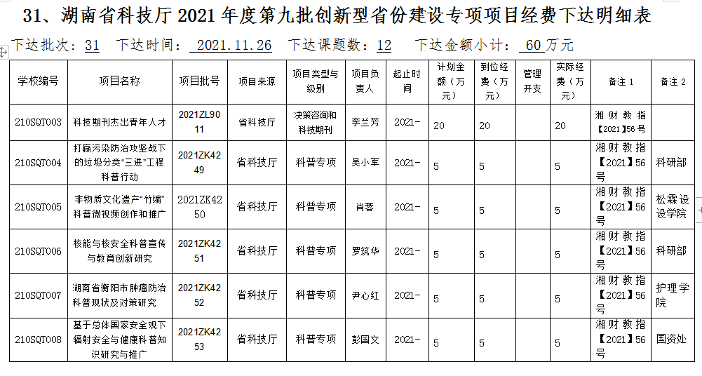 南华大学best365英国在线体育学生李博宇、吴瑕、米懿分别于2021年荣获湖南省科技厅创新型省份建设项目资助,成为我校首批荣获该项目资助学生。