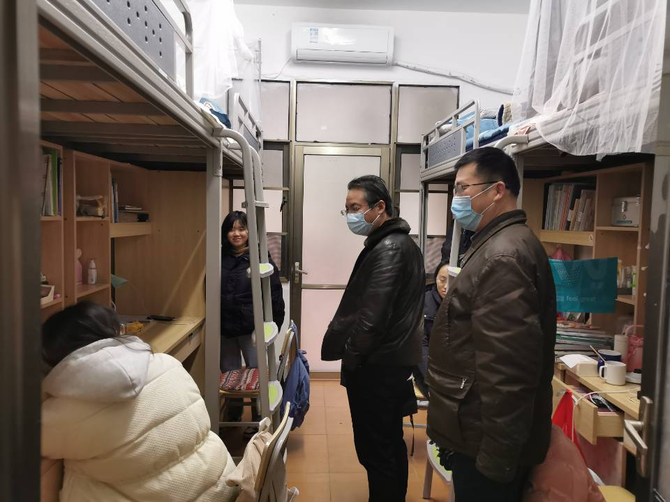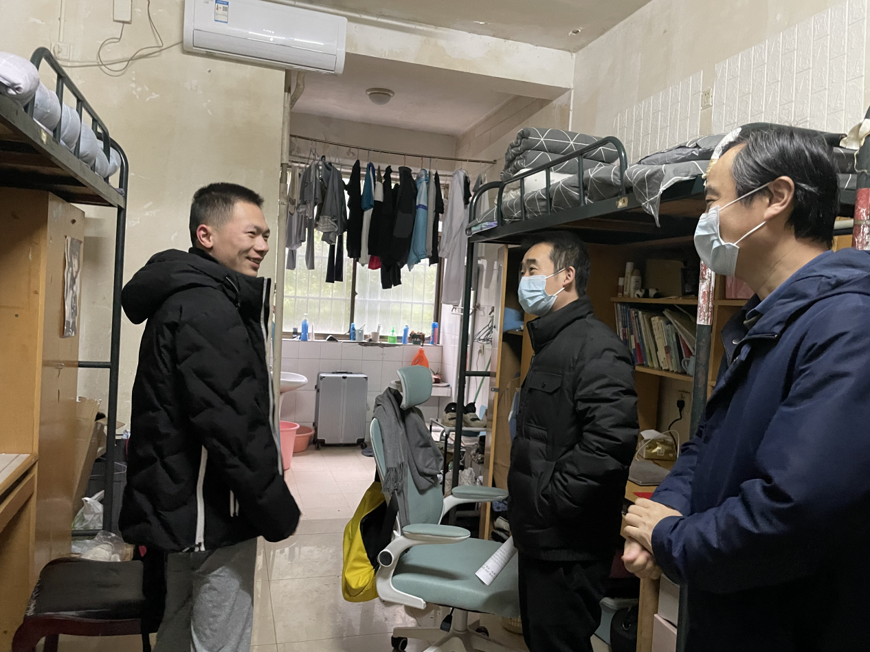 第一次走访宿舍活动顺利完成。2月20日下午,学院党委书记龙鼎新、副院长(主持工作)杨飞、党委副书记王超、副院长张朝晖一行带队走访学生宿舍,慰问学生假期学习与生活情况,鞭策学生尽快适应新学期。