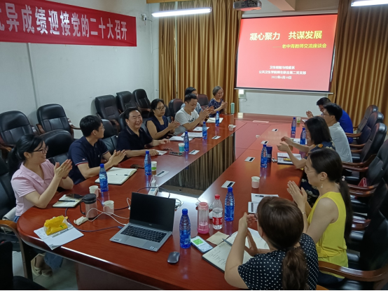 6月10日下午,卫生检验与检疫系与师生联合第二党支部共同主办了“凝心聚力,共谋发展”老中青教师座谈会。全国卫生化学专业委员会名誉主任委员、全国卫生检验学专业委员会常务委员、我校卫生检验与检疫专业创办人之一吕昌银教授受邀出席了座谈会,学院副院长杨慧仙、实验中心主任杨胜园、新进教师和中青年教师参加了本次活动。卫检系主任陈丽丽主持座谈会。