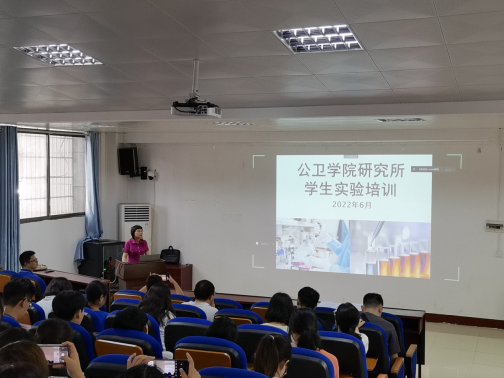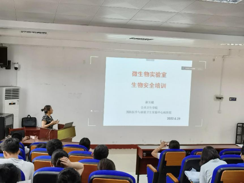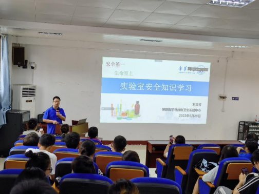 为了进一步加强暑期实验室安全管理工作,强化安全意识和责任,我院预防医学与放射卫生实验中心于2022年6月29日下午在医学楼101学术报告厅举行实验室安全教育培训,2021级研究生和部分本科生参加了本次安全教育培训。