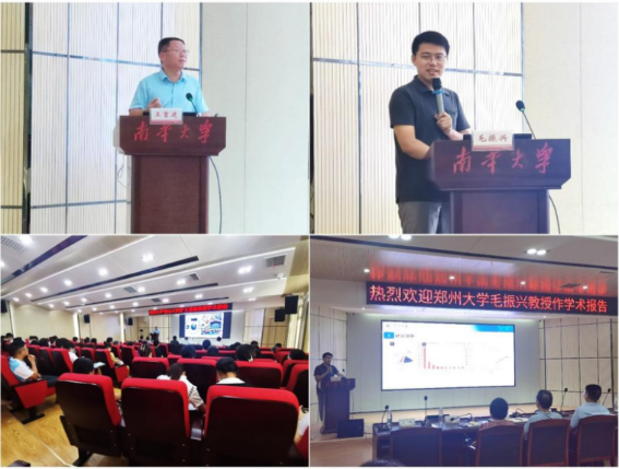 2022年8月18日下午,郑州大学best365英国在线体育王重建教授和毛振兴教授应邀来我院讲学。best365英国在线体育党委书记龙鼎新、副院长(主持工作)杨飞、副院长杨慧仙、张朝晖以及在校教师和研究生参加了报告会。会议由杨飞教授主持。