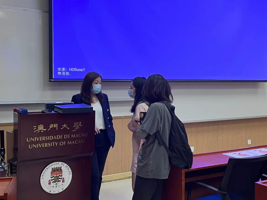 2022年10月13日,南华大学—澳门大学“医药与健康科学专题研学”活动于10点开始,首先由澳门大学公共卫生及医药管理系的吴霭琳助理教授讲授“中医药在大健康产业中的应用与发展”,吴老师先详细介绍了重要在大健康产业中的应用,中药的产业化路径和中药监管对产业化发展的意义,让来自不同学院的同学们明白,不管是新药的发现与研究、临床前的实验、药物的制造和上市还有上市后的监管,大家都是药物体系中某一环节中的一员,要明白自己的定位,懂得如何与其他环节合作。吴老师还讲述了澳门本地的中药发展现状和澳门的监管体系,让我们更加深入的了解澳门的发展,粤港澳大湾区的医药创新发展。课中同学们认真听讲,积极用英语向吴老师提问交流,课后同学们意犹未尽争相向请教吴老师,吴老师对南华大学研学团学员们的英语交流能力、专业知识面及良好的求学精神予以了高度赞赏和充分肯定。