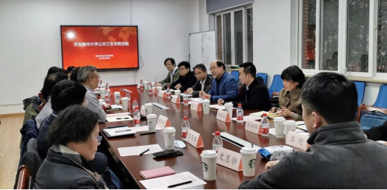 杨飞、龙鼎新详细地介绍了学院的发展历程、学科建设和科研情况以及人才培养等情况。针对学院十四五期间“三大”目标,围绕公共卫生人才培养、科学研究与学科建设、师资队伍建设、平台建设和社会服务等方面阐述学院发展所需要的帮扶点并提出工作思路。