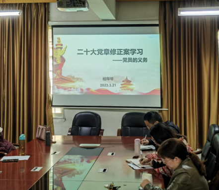 会上,与会人员首先一起观看党性教育视频《雷锋的偶像》。接着,党支部书记柏琴琴以《二十大党章修正案学习——党员的义务》为题上了微党课。此次微党课主要介绍了党章修正案关于党员必须履行的义务进行的修改。重点介绍了党章修正案为什么在党员义务中增写学习党的历史的内容,以及为什么增写增强“四个意识”、坚定“四个自信”、做到“两个维护”的内容。