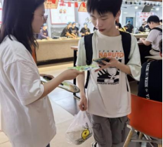 团队成员们还将营养知识折页和印有膳食宝塔及健康饮食标语的扇子向过往师生分发,热情交流互动,并耐心解答大家关于营养健康的各种疑问。从如何选择健康食品到如何根据自身情况调整饮食结构,成员们凭借扎实的专业知识,用通俗易懂的语言向师生传递营养知识。一名大二学生笑着表示:“扇子正好夏天用,还能随时提醒自己别贪奶茶。”