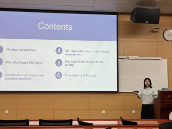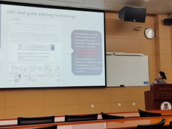 我院九名学员被分到第四组和第七组。柳影柔同学作为第四组主发言人汇报了对于基因编辑的思考,从基因编辑的历史、相关研究以及社会上的争议等情况进行了详细介绍。在相关研究部分,柳影柔同学重点提到了我院邓仲良副教授团队在国际生物传感领域知名期刊《Biosensors and Bioelectronics》上发表的高水平研究成果。潘昱帆同学作为第七组主发言人汇报了肥胖与精准医学的思考,该组围绕肥胖与精准医学之间的关系展开了汇报。