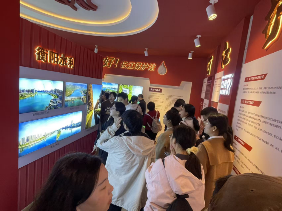 在湖南省水法治宣传教育基地,党员们认真聆听讲解,深入学习水环境保护相关法律法规,进一步增强法治意识和生态责任。