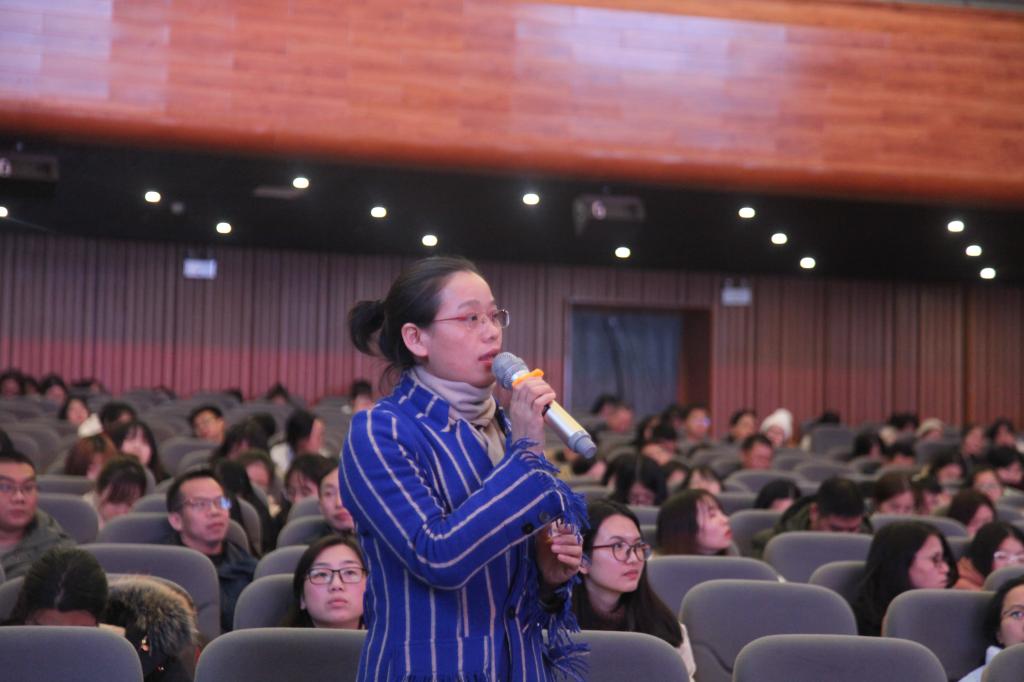 会场内师生认真听取专家报告并积极与专家沟通交流
