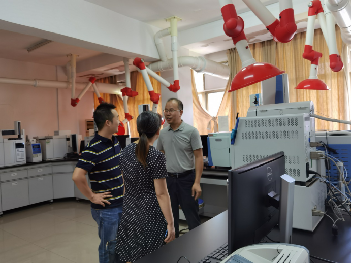 会后,学院老师在中心理化科谢宏斌科长带领下,参观了理化实验室,杨飞博士仔细地与谢科长交流,了解仪器设备功能,对深入开展科研合作有了很好的思路。