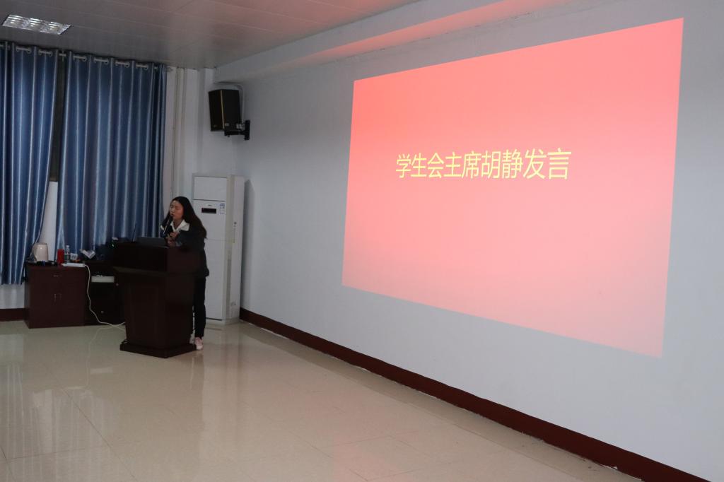 首先,胡静对2018下半年的学生会工作进行了简要总结,并指出新学期学生干部要转变活动理念,使学生会工作迈上新台阶。她指出本学期院学生会的工作重点是读书活动方案的推进。