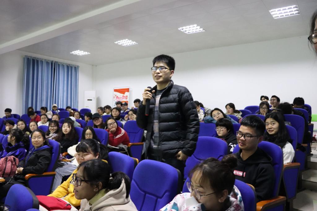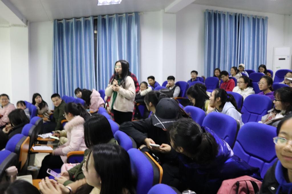 活动伊始,蒋剑红老师致开场白。蒋老师指出此次活动旨在宣传学生身边的榜样事迹,激励全院学生向榜样学习的斗志,奋发向上,顽强拼搏。紧接着,袁景国学长以“知满足,懂感恩,存孝道,思上进”为主题,以自己的成长经历告诉大家,不管前路如何,我们都应该要学会自立自强、积极乐观地生活。李映梅学姐从学习、工作、社会实践、个人感悟四个方面教导大家在学习和生活中要不断磨炼自己,才能不断成长,在平淡中活出精彩的自己。要学会坚持,并多与身边优秀的同学一起进步成长。最后,活动在学生的互动环节中顺利结束。