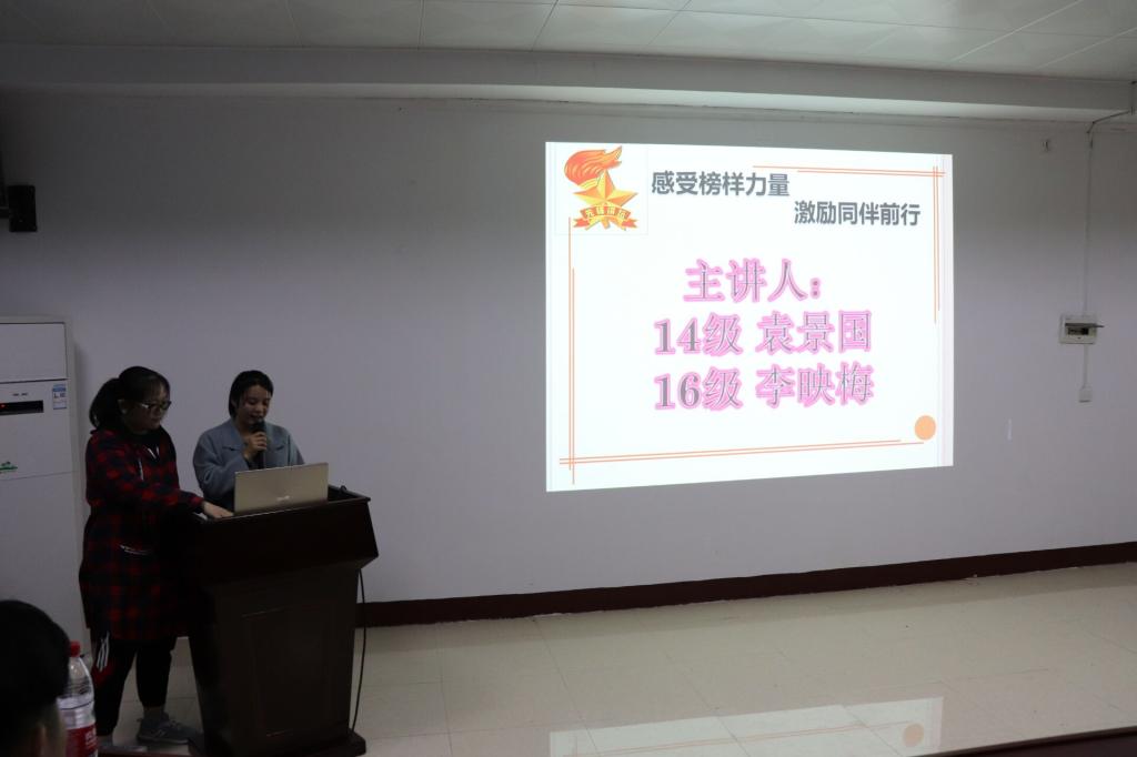 “以人为镜,可以明得失”。学生榜样不仅是一面镜子,也是一面旗帜,让我们知自身的差距与不足,引导我们不断追求卓越。3月22日晚,南华大学best365英国在线体育在红湘校区三教101室举办了以“感受榜样力量,激励同伴前行”为主题的先锋讲坛活动。本次活动由成秀主持,主讲人员为校优秀共青团员和十佳学习标兵李映梅以及院励志创业榜样袁景国学长。出席此次活动的老师是院团委书记蒋剑红,我院16、17、18级各班学生代表参加活动。