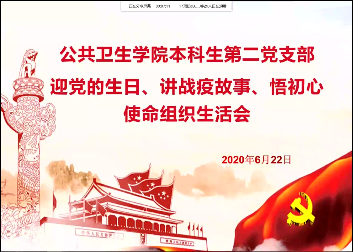 其他与会党员同志也分享了自己感悟颇深的战疫故事。在这些最美逆行者组合的一帧一画中,每位学生党员都收获良多,并表示在以后的学习工作中都应该学习这次疫情中站在抗疫前线的党员同志的精神,充分发挥公卫人的防控堡垒作用。