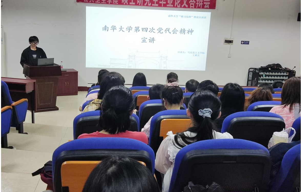 宣讲主要分为四个部分,王昶杰首先介绍了我校第四次党代会的概况及重要思想。大会听取和审议了中国共产党南华大学第三届委员会工作报告、中国共产党南华大学第三届纪律检查委员会工作报告,选举产生了中国共产党南华大学第四届委员会和中国共产党南华大学第四届纪律检查委员会。