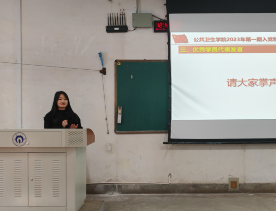 随后,优秀学员本科生代表谭翔发言。他表示,在此次学习过程中他深刻认识到,作为入党积极分子,我们肩负着更加重要的责任和使命。党的历史告诉我们,中国共产党能够始终保持先进性和纯洁性的核心原因在于严厉的、严格的党内教育和管党治党,依靠的是党员干部的努力奋斗和一代又一代共产党人的英勇牺牲。面对伟大的时代使命和来之不易的党的事业,在今后的学习生活中,我们要以党员标准严格要求自己。优秀学员研究生代表吴霞号召大家端正入党动机,做一名思想政治素养高,文化知识储备多的优秀新青年,不断完善自我,用实际行动争取做一名合格的共产党员。