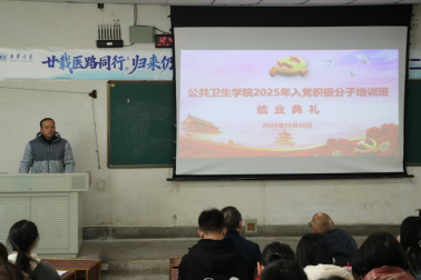 最后,院党委书记龙鼎新讲话。他高度肯定了本次培训成果,并对全体学员提出三点期望:一是勤学笃行练本领,深耕专业并投身实践;二是勇于担当践宗旨,服务同学且冲锋在前;三是严于律己修品格,以党员标准锤炼党性。他鼓励学员以培训为新起点,争取早日成为合格党员,为健康事业贡献青春力量。