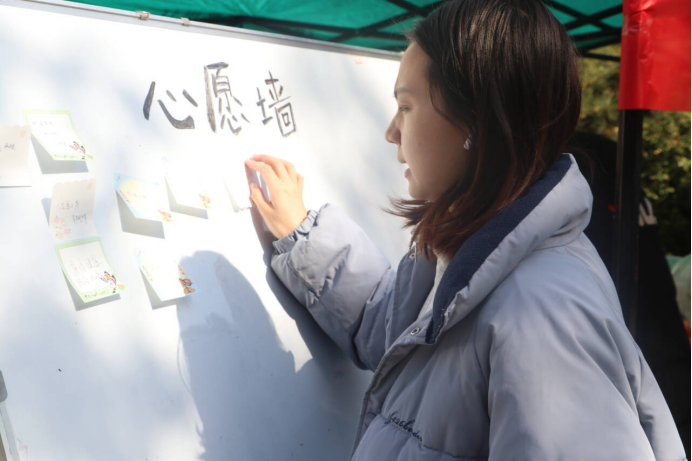 心愿墙前,同学们执笔写下寄语——“一‘研’为定,阳光万里”“愿我们都能走向春暖花开”……字句恳切,汇聚成考研路上的温暖力量。