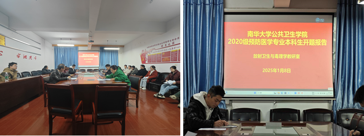按照学院的培养要求,放射卫生与毒理教研室于2025年1月8日上午8:30举行2020级预防医学专业本科学生毕业论文开题报告会。本次开题分为两组进行,龙鼎新、张朝晖分别担任组长主持,专家组成员包括赵维超、曹毅、肖方竹、蒋天翼、杨越、刘婉婧,开题地点分别设在学院-201和3-101会议室。