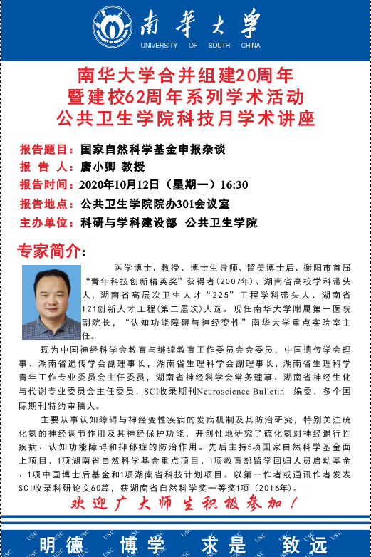 南华大学合并组建20周年暨建校62周年系列学术活动best365英国在线体育科技月学术讲座——国家自然科学基金申报杂谈