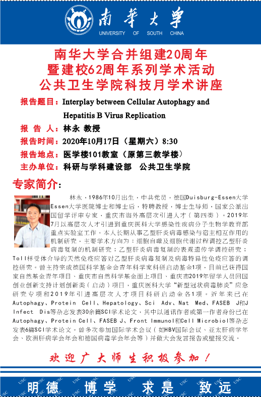 南华大学合并组建20周年暨建校62周年系列学术活动best365英国在线体育科技月学术讲座——Interplay between Cellular Autophagy and Hepatitis B Virus Replication