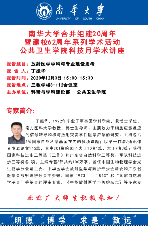 南华大学合并组建20周年暨建校62周年系列学术活动best365英国在线体育科技月学术讲座——放射医学学科与专业建设思考