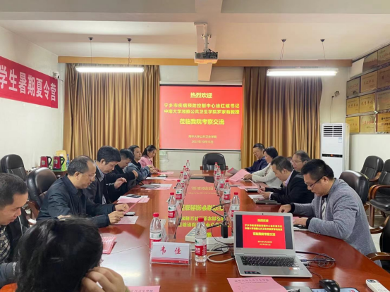 杨飞致欢迎辞,三方介绍了参会人员。随后龙鼎新从学院的基本情况、发展成效与亮点、机遇和面临的挑战、以及发展思路和举措等四个方面介绍了学院发展情况。徐红斌对best365英国在线体育近年发展取得的成绩给与了高度赞扬,同时介绍了宁乡市疾控中心的基本情况,汇报从疾控简介、政策支持、行业优势、合作共赢四个方面展开。罗家有针对“肥胖儿童脂肪肝人群队列调查的研究思路和方案”等方面进行了深入的阐述和交流,共同探讨科研合作切入点。