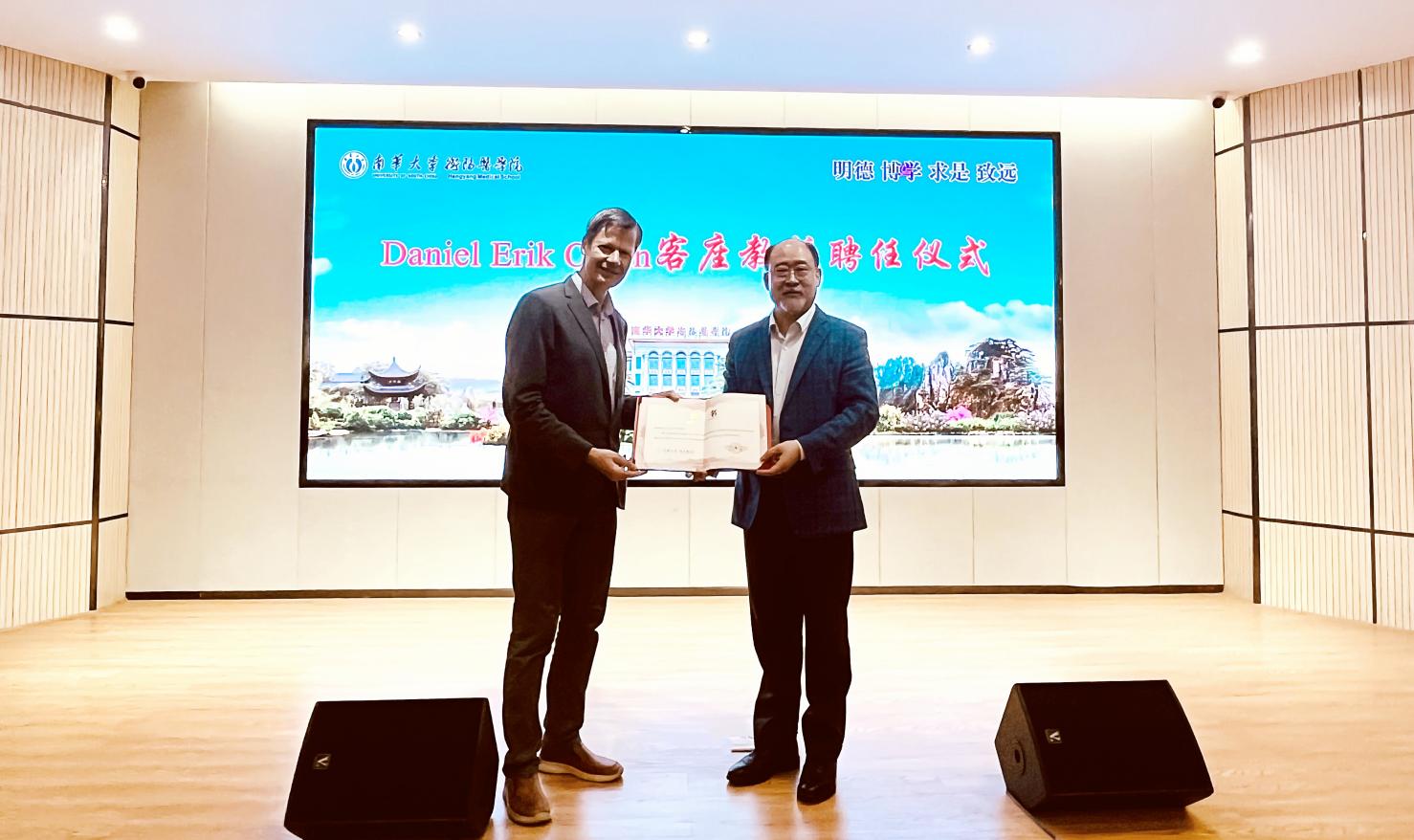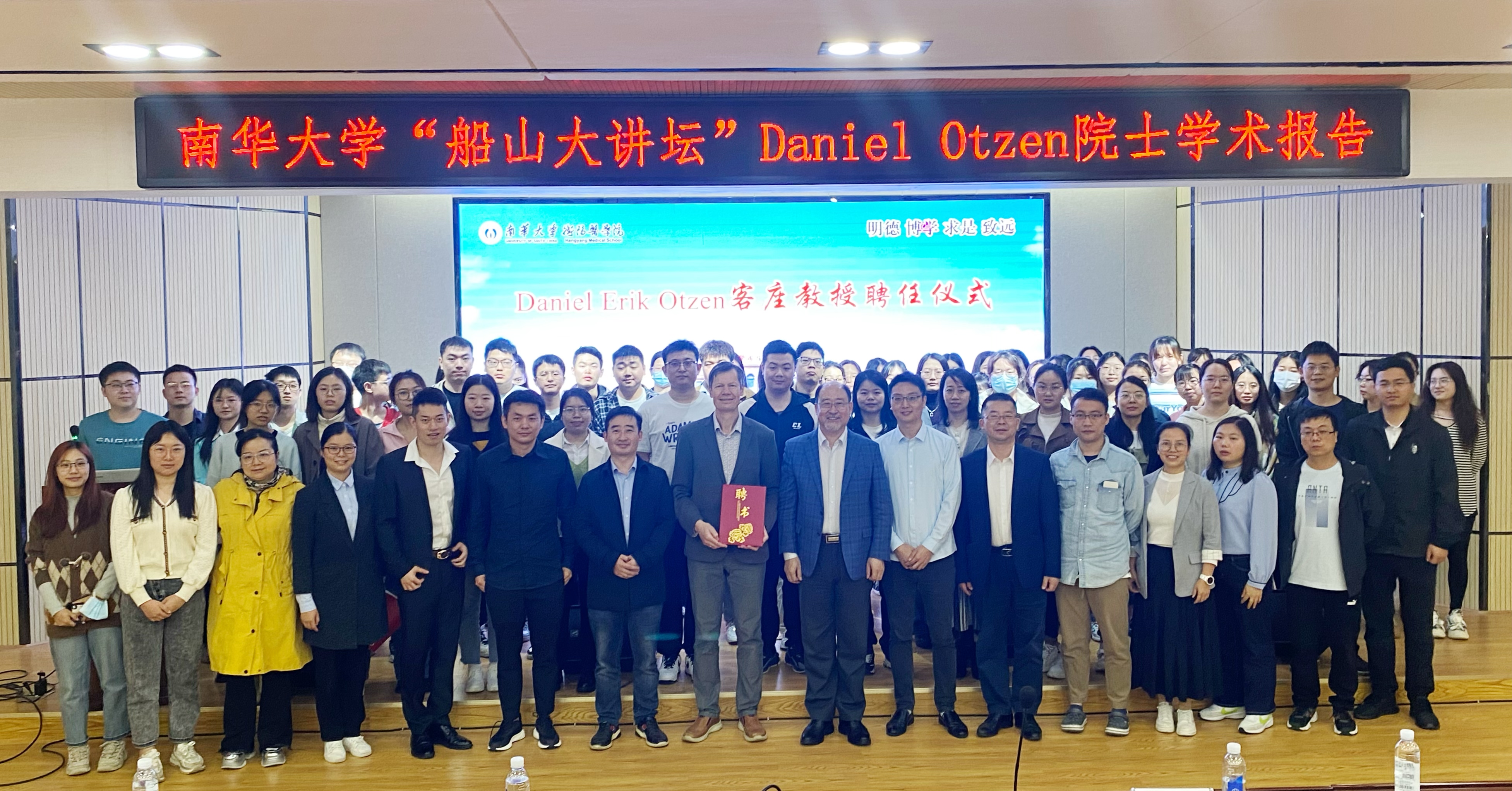 讲座最后,王福俤为Daniel Otzen院士颁发了“客座教授”的聘书。期待今后加强双方交流合作,助力南华大学国际化。