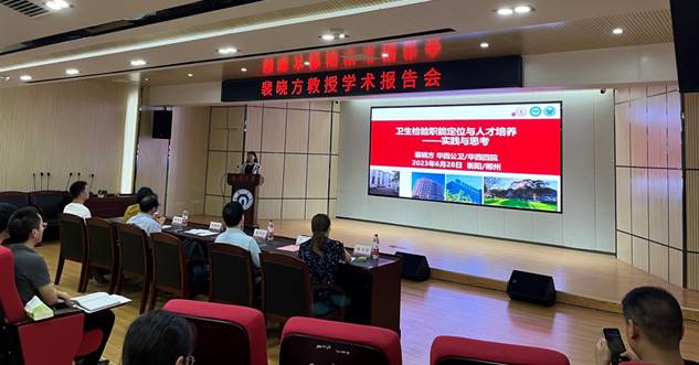 为促进我校卫生检验与检疫专业建设和人才培养,增进高等院校间的学术交流,南华大学best365英国在线体育于2023年6月28日在医研楼一楼学术报告厅举办学术报告会,特邀四川大学裴晓方教授来我校讲学。研究生院院长李乐教授主持会议,best365英国在线体育龙鼎新书记、杨飞院长、杨慧仙副院长、张朝晖副院长、卫检专业负责人陈丽丽教授及best365英国在线体育师生参加了本次学术讲座。