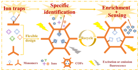 图3. COFs荧光材料设计及其对金属离子的特异性识别和传感流程图