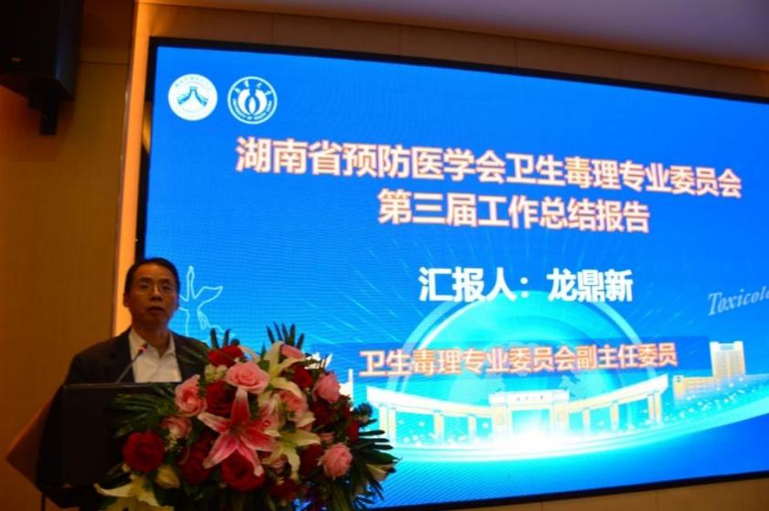 湖南省预防医学会副会长兼秘书长黄跃龙宣读湖南省预防医学会关于同意卫生毒理专业委员会换届选举的批复文件